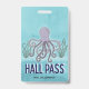 Passe de corredor divertido e colorido para dar aos alunos que saem da sala de aula para fazer uma pausa no banheiro. Criatura marinha polvo roxo divertida e fofa feita em forma de arte em aquarela. Tipografia moderna e fácil de ler. Personalize com seu nome ou nome do professor ou da equipe.