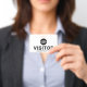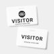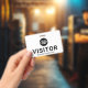 Crachá de ID de passagem do logotipo de empresa personalizado Visitor. Design preto e branco moderno com fonte fácil de ler. Personalize este modelo de crachá de visitante com o logotipo da sua empresa, altere facilmente o texto e as cores neste design.