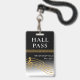 Ombre White e Black School Hall passam crachá para professores de música. As notas de música ouro legal escalam o design com texto branco personalizável. Layout vertical. Personalize-o adicionando seu número de sobrenome e sala de aula. Excelente de volta à escola para professores do ensino fundamental.