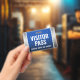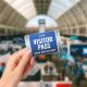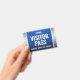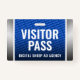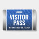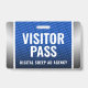 Um design moderno com letras brancas, todas as sans serif maiúsculas, colocadas sobre o azul real, o aço vestido e os fundos de gradiente branco a negro, adiciona profissionalismo e facilidade de leitura a este passe de visitante ou convidado. Personalizar com nome de empresa, divisão, local de trabalho e/ou departamento. O tipo de fonte e as cores podem ser modificados conforme desejado. O reverso mostra design idêntico. Design © W.H. Sim, Todos os Direitos Reservados. Mais informações em zazzle.com/expressionsoccasions