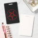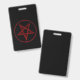 Pentagrama vermelho, invertido, texturizado em círculo, sobre fundo preto. Símbolo oculto. 666