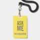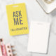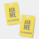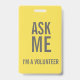 Crachá Pergunte-me Cinzas amarelas. Sou um voluntário