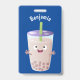 Crachá Personagem de desenho animado fofo e feliz de chá