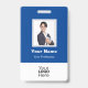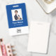Personalize facilmente este Crachá de Nome de Funcionário Personalizado com foto, leia o código QR e logotipo da empresa. Um design empresarial simples em cores azul-marinho e branco totalmente personalizável nas dimensões da frente e verso, fontes básicas e modernas sem serifa e um visual profissional e claro. Disponível com cordão, clipe de metal ou retrátil. Sem pedido mínimo.