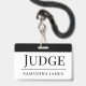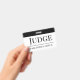 Crachá de nome de juiz com tipografia serifada moderna para competições e concursos.