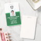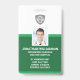 Crachá de identificação fotográfica personalizado, durável e de alta qualidade, duplo lado para empresa/hospital. Na frente, adicione facilmente o logotipo da sua empresa (ou exclua), foto do funcionário, nome, cargo e informações de identificação. No verso, adicione linhas adicionais de texto personalizado, ou seja, endereço comercial, e-mail, número de telefone, localização do prédio, etc. Além disso, adicione um código de barras, código QR ou logotipo da empresa - ou exclua. O crachá atual oferece um esquema de cores verde que pode ser facilmente alterado para combinar com as cores da sua empresa.