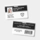 Crachá de identificação fotográfica personalizado, durável e de alta qualidade, duplo lado para empresa/hospital. Na frente, adicione facilmente o logotipo da sua empresa (ou exclua), foto do funcionário, nome, cargo e informações de identificação. No verso, adicione linhas adicionais de texto personalizado, ou seja, endereço comercial, e-mail, número de telefone, localização do prédio, etc. Além disso, adicione um código de barras, código QR ou logotipo da empresa - ou exclua. O crachá atual oferece um esquema de cores preto que pode ser facilmente alterado para combinar com as cores da sua empresa.