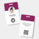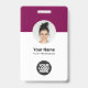 Personalize facilmente este Crachá de Nome do Funcionário Minimalista de Negócios Personalizado com Foto, Digitalize o Código Qr ou Digitalize o Código do Bar e o logotipo comercial. Um simples design de negócios com fotos redondas, em vinho tinto de cereja e cores brancas coloridas e entrelaçadas, totalmente personalizáveis nos tamanhos da frente e do dorso, fontes básicas e modernas sans-serif e um olhar profissional e claro. Disponível com jardim, clipe de metal ou com retratável. Sem ordem mínima.