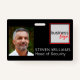Crachá de segurança para identificação de fotos para uma empresa ou empresa. Este design modelo permite criar seu próprio crachá exclusivo. Você pode colocar sua própria imagem fotográfica ou de seus funcionários, bem como nome e função personalizados ou título de cargo. Há também espaço para colocar o logotipo da sua própria empresa quadrada.