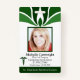 Crachá de identificação médica verde personalizado com um design de onda moderno e abstrato acima do hospital ou foto do funcionário da clínica. Adicione a sua própria fotografia e informações personalizadas, incluindo o título do trabalho, o nome do departamento, o número de identificação, a data de emissão ou de expiração e o nome e logotipo do recurso médico. Pode ser personalizado com o seu médico pessoal ou código de barras de enfermeiro na parte traseira para mais segurança e acesso.