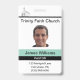 Crachá personalizado de igreja para um Pastor, embora possa ser personalizado para qualquer funcionário da igreja. Cada parte deste crachá de identificação pode ser modificada para atender às suas necessidades. O nome da igreja, a foto do funcionário, o cargo da pessoa e o endereço e número de telefone podem ser personalizados. Há também um número de identificação no verso que pode ser modificado ou excluído.