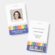 Add a cheerful touch to your school’s professional image with this modern and customizable teacher ID badge. Featuring a fun rainbow pencil illustration with blue, and a clear photo template, it’s both practical and playful. Personalize the front with your name and teacher's grade, and easily add school details on the back. Perfect for preschool, kindergarten, and elementary school teachers who want to combine professionalism with a touch of creativity. This template comes with a barcode on the back. Upload your code and photo in the personalize this design section.