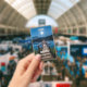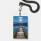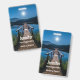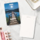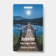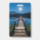 Uma plaqueta com uma bela fotografia de um píer de madeira que se estende sobre um lago calmo.