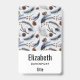 Crachá personalizado com um belo padrão. Pinhas, penas, agulhas de pinho e bagas. Design de aquarela russa.