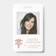 Crachá de hospital elegante para enfermeira registrada com logotipo médico de caduceu em ouro rosa metálico falso. Para produtos correspondentes ou personalizações, visite JustFharryn @ Zazzle.com ou entre em contato com o designer c / o fharryn@yahoo.com #zazzlemade #bohochic