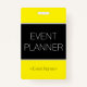 Este moderno design crachá apresenta a mensagem "PLANEJADOR DE EVENTOS". A parte traseira apresenta um nome de evento personalizado e data(s) de evento. Um crachá como este poderia talvez ser usado para mostrar que o usuário está trabalhando para ou em um evento. [~Z0000307]