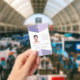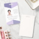 Adicione facilmente, aqui e agora, detalhes de foto, nome e logotipo comercial a este modelo de crachá de identificação. Use uma fotografia de estilo de identificação (vertical) de perfil para obter melhores resultados.