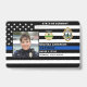 Identifique-se facilmente a si mesmo e ao seu policial no departamento de polícia com estes crachás personalizados de fotografia, logotipo, código de bar, cartão de identificação da polícia com a bandeira azul fina. Personalize com foto do policial, nome, número do crachá, detalhes e departamento de polícia. Personalize com o logotipo, o selo e o código de barras da sua delegacia. Este crachá de cartão de identificação policial de linha azul é perfeito para todos os policiais, polícias, sargento, chefe, capitão e tenente. COPYRIGHT © 2020 Judy Burrows, Black Dog Art - Todos Os Direitos Reservados. Polícia Oficial Fotografo Logotipo da Polícia Crachá