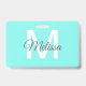 Crachá praia chic feminina abstrata turquesa azul aqua