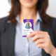 Crie um crachá de identificação profissional e na moda para o profissional de enfermagem. Este modelo personalizável apresenta um design roxo moderno, perfeito para hospitais, clínicas e instalações de saúde. Personalize facilmente com sua foto, nome, título (Enfermeiro Praticador NP), número de identificação, localização e muito mais. Adicione um código de barras à parte traseira para obter segurança aprimorada. O layout limpo garante que todas as informações vitais sejam claramente exibidas. Este modelo também é facilmente adaptável para outros profissionais de saúde. Basta ajustar os campos de texto para refletir sua função e informações específicas.