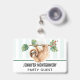 Crachá com uma preguiça adorável pendurada de cabeça para baixo em um galho de árvore. O galho de árvore é decorado com folhas tropicais e bagas.
