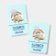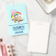 Um arco-íris colorido atrás dele junto com um sol rosa pairando sobre a cabeça. Fofo, adorável e moderno.