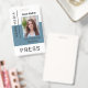 Pressione o Crachá azul empoeirado de foto do funcionário de mídia de ID de trabalhador. ID de imprensa personalizada - um crachá elegante com o logotipo do seu jornal ou canal de notícias, foto, nome, cargo e muito mais, se necessário. Fácil de personalizar com seus detalhes. Adequado também para correspondentes, fotógrafos, profissionais de mídia, repórteres e jornais. Observe que a cor de fundo, as fontes e os tamanhos do texto podem ser alterados.