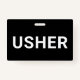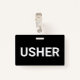 Um moderno crachá de contínuos para o evento, ou contínuos de teatro. Tipo de bloco branco sólido em um crachá preto. Design moderno simples.
