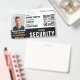 Crachá de identificação de segurança privada personalizado com um design geométrico moderno. Este modelo editável inclui sua foto de ID, nome, número do funcionário, cargo, nome da empresa, data de expiração, logotipo e um código de QR ou código de barras. Ideal para vários locais de trabalho e papéis, como guardas de segurança privada, oficial de proteção próximo, segurança de loja, guarda-costas pessoal, porteiro oficial, trabalhador de varejo, passe de funcionarios médico e muito mais. Cores impressas: azul, ouro, preto e branco. Compre a coleção para obter mais crachás e etiquetas para venda on-line, projetados para o setor de serviços de segurança.
