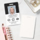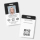 Crie uma aparência profissional com este crachá de identificação de na moda. Um modelo simples personalizado com sua foto de ID, nome, cargo, logotipo da empresa e data de validade. O espaço é fornecido para o seu logotipo e dois símbolos de acreditação. Os detalhes de devolução estão no verso, juntamente com informações adicionais, e um código de barras ou código QR. Personalize o texto para se adequar à sua empresa. Ideal para muitos locais de trabalho diferentes, incluindo profissionais corporativos, consultores de negócios, varejistas, funcionarios médico e muito mais. Cores impressas: preto e branco.