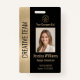 Personalize facilmente este crachá profissional de identificação de fotos de ouro escovado e de funcionário preto, no estilo de luxo, com seus detalhes personalizados.
