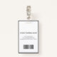Logotipos elegantes e simples em preto e círculo sobre fundo branco. Informações adicionais podem ser adicionadas à parte traseira deste crachá de ID de negócio
