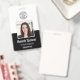 Personalize esses crachás verticais com uma foto e um nome de funcionário, juntamente com duas linhas de texto personalizado adicional para o número de ID do funcionário, função ou título, local ou outros dados-chave. Adicione seu logotipo no topo. Campo de texto personalizado adicional localizado no verso para informações de retorno ou outros detalhes.