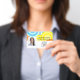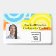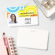 Crachá de identificação do professor do jardim de infância pronto para personalizar o nome, a posição, a foto, o logotipo da escola, o código do bar e qualquer informação adicional no verso