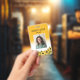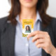 Crachá de identificação de girassol vertical personalizado com foto, nome, nota contra um gradiente branco e amarelo e com girassóis. Professor de jardim de infância com crachá de girassol.