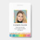 Diversão do crachá de identificação da empresa de lápis coloridas do arco-íris. Perfeito para escolas primárias, creches e infantários.
