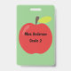 Personalize o nome, série e escola neste distintivo de maçã vermelha.