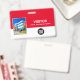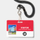 Personalize facilmente este crachá de visitante ou funcionário personalizado com foto, código de barras de leitura e logotipo da empresa, com pulseira incluída. Um design simples de negócios em cores vermelhas e brancas totalmente personalizável nas tamanhos da frente e verso, fontes básicas e modernas sem serifa e um visual profissional e claro. Disponível com ou sem pulseira, clipe de metal ou retrátil. Sem pedido mínimo.