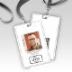 Design elegante de crachá de identificação com foto proeminente e logotipo personalizado. Código QR no verso para compartilhamento rápido de contato inteligente. Perfeito para identificação e segurança da empresa. Também ótimo para crachás de eventos profissionais.