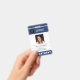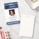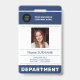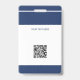 Cartão de identificação personalizado para funcionários - identificação moderna e elegante com badge azul-marinho e branco com o logotipo da sua empresa, foto, nome, cargo, código QR ou código de barras e outros detalhes - se necessário. Fácil de personalizar com suas informações em ambos os lados! Adequado para funcionários corporativos, gerentes, executivos, contadores, funcionários de escritório, armazéns, empresas de varejo e logística. Observe que a cor do fundo, as fontes e os tamanhos do texto podem ser alterados. Você pode enviar um código QR ou código de barras para ser digitalizado ou adicionar qualquer outro texto no verso.