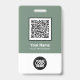 Personalize facilmente este Crachá de Nome de Funcionário Personalizado com ou sem Foto, Qr Code, Código de Barras e logotipo da empresa. Um design empresarial simples em cores verde sage e branco totalmente personalizável nas dimensões da frente e verso, fontes básicas sans-serif e modernas e uma aparência profissional e clara. Disponível com cordão, clipe de metal ou retrátil. Sem pedido mínimo.