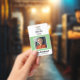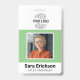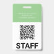 Crachá QR de funcionário comercial verde com cartão de identificação moderno, logotipo em branco.