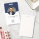 Este cartão de identificação de funcionário vertical branco e azul marinho minimalista apresenta tipografia moderna e design simples. Personalize-o com sua foto, logotipo, nome, cargo, texto personalizado e URL.