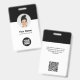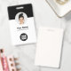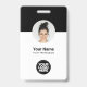 Personalize facilmente este Crachá de Nome do Funcionário Minimalista de Negócios Personalizado com Foto, Digitalize o Código Qr ou Digitalize o Código do Bar e o logotipo comercial. Um simples design de negócios com fotos redondas, em cores modernas preto e branco, totalmente personalizável em tamanhos dianteiros e traseiros, fontes básicas e modernas sans-serif e uma aparência profissional e clara. Disponível com jardim, clipe de metal ou com retratável. Sem ordem mínima.