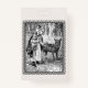 Esse nome ou crachá de identificação é branco com uma ilustração branca e preta de um pequeno capô de equitação vermelha no bosque falando com o lobo em um quadro negro rico. Personalize seu nome e informações com os modelos.