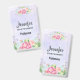 Crachá de nome com uma design de aquarela bonito. Flores cor-de-rosa arranjadas num belo buquê. Púrpura de cor d'água.