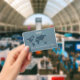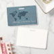 Que a aventura comece, design de texto com decoração de mapa mundial em fundo azul desgastado