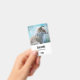 Placa de identificação com uma foto de uma raposa fofa sozinha.