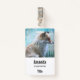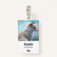 Nome de etiqueta com uma foto de uma raposa fofa sozinha. Colocado sobre um fundo azul de inclinação.