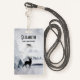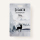 Nome de etiqueta personalizado com uma imagem de aquarela apresentando uma rena preta de silhueta em pé entre alguns pinheiros. Esquema de cor neutra a preto e branco.